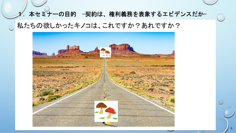 「本セミナーの目的-契約は、権利義務を表象するエビデンスだが-」部分を一部ご紹介します。