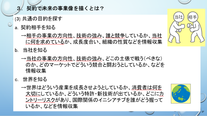 契約相手を知る:事業の方向性、技術の強み、当社への希望